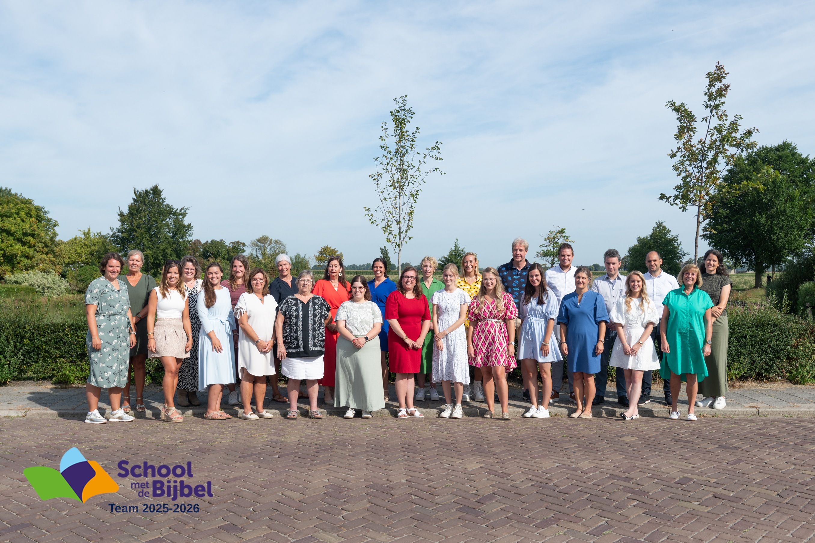 v.l.n.r. juf Slingerland, juf De Vos, juf Sharon vd Broek, juf Ankie Goudzwaard, juf Mirjam Cornelisse, juf Lagendijk, juf Janet Pannekoek, juf Eline den Boer, juf Anja Honkoop, juf Struijk, juf Lydia Dooge, juf vd Ende, juf Janine Elenbaas, juf Clara Koudstaal, juf Thirza Batenburg, juf Hoogesteger, juf Evita Stouten, meester Bakker, juf Gertine van Vugt, meester Korpershoek, juf Jolanda Dorst, meester Troost, meester Van Putten, juf vd Werken, juf Anneleen Flikweert